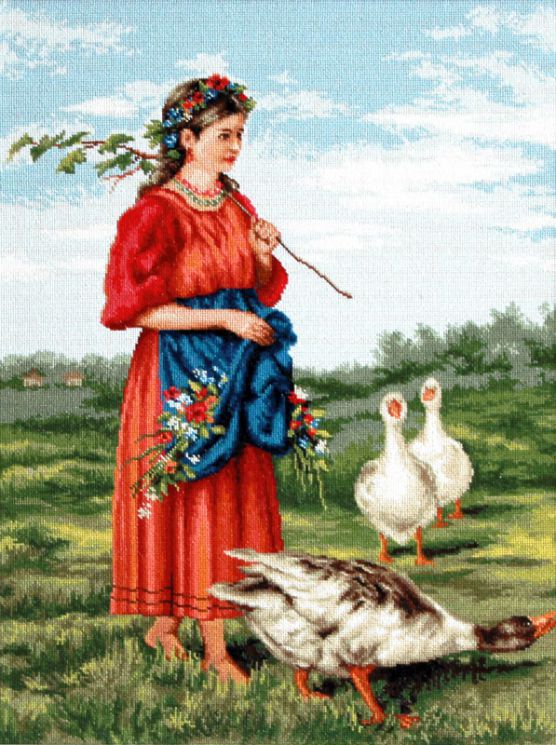 B486 Набор для вышивания Luca-S "Девочка с гусями"